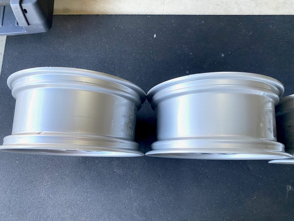 One wheel shows a small area of paint pox along the lip and edge upon close inspection, but the finish remains clean and uniform overall.