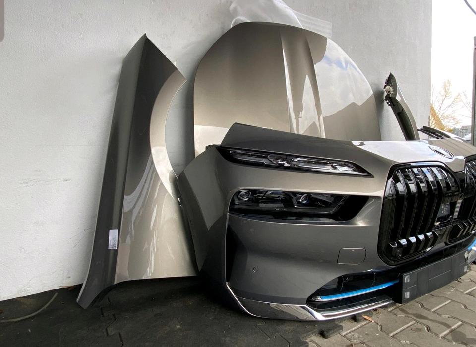 The definitive front-end assembly for the flagship electric sedan. This is a complete, original front package from a BMW i7 (G70), finished in the sophisticated C4A color. The set includes the groundbreaking Swarovski crystal headlights and every major component needed for a comprehensive restoration or repair, offering unparalleled value and authenticity. BMW i7 G70 Front End Package
