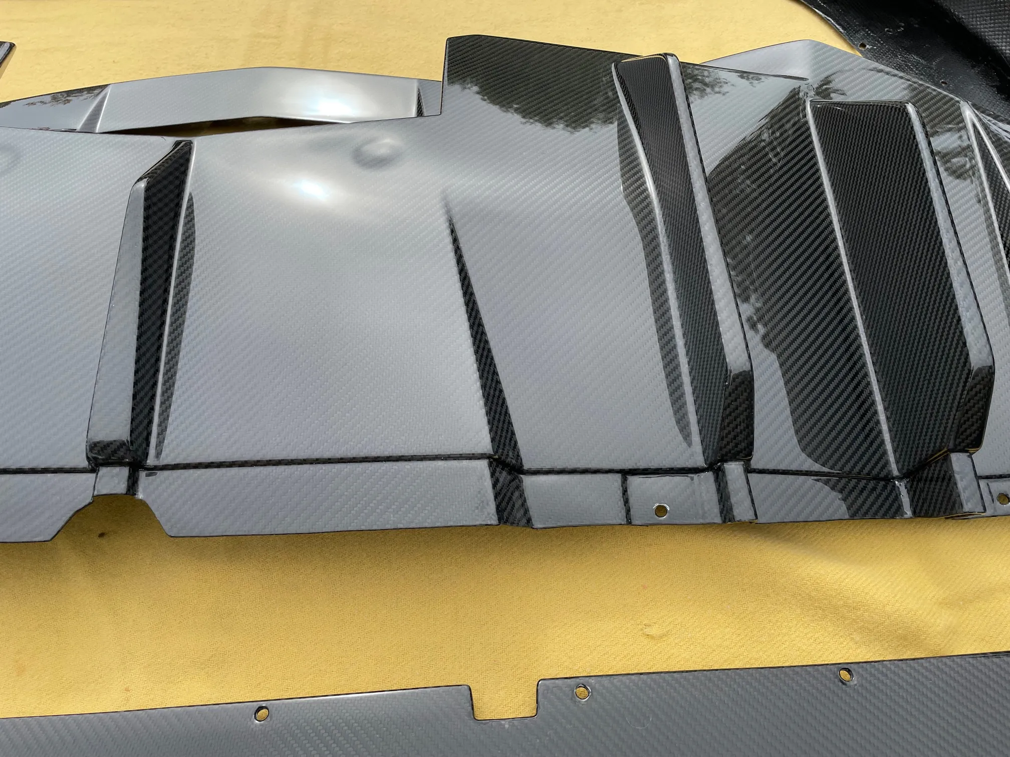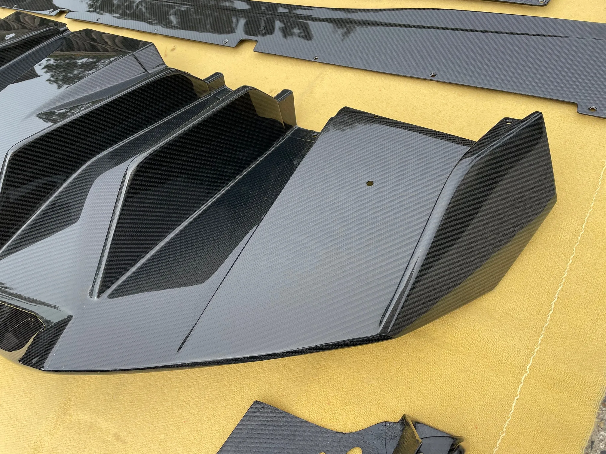 The kit includes a three-piece front splitter, side skirts, and a rear diffuser, enhancing both visual impact and aerodynamic presence. Constructed from carbon fiber, these components are ideal for owners looking to elevate the Aventador’s appearance while maintaining a high-end, performance-focused aesthetic. Carbon-Fiber Kit for Lamborghini Aventador LP700-4